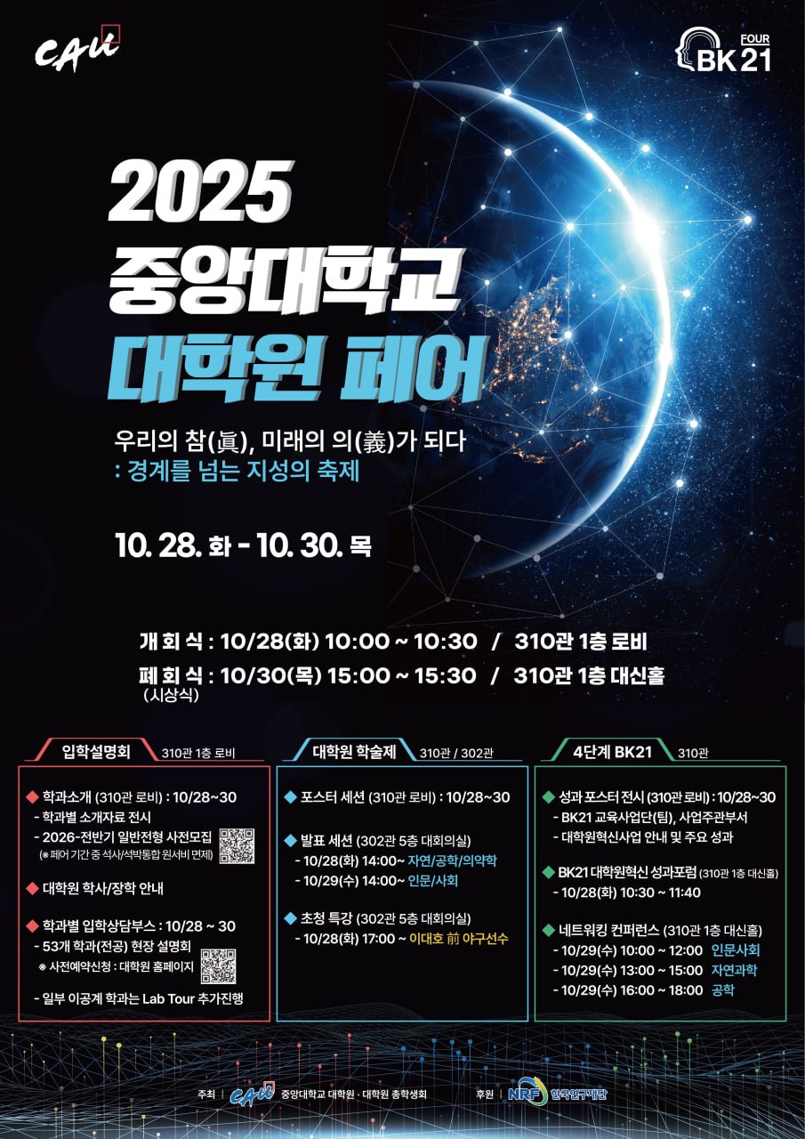 구분 | 입학설명회(2026 전반기입시) | 대학원학술제 | BK21 성과포럼/ 네트워킹컨퍼런스 |